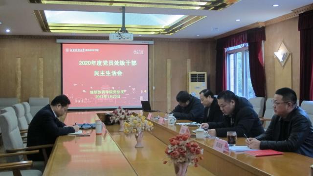 按照学校党委《关于开好2020年度党员处级干部民主生活会的通知》(江财党字〔2021〕3号)文件精神和要求,继续教育学院于2021年1月23日召开2020年度党员处级干部民主生活会,副校长袁雄到会指导,学院领导班子成员参加会议。