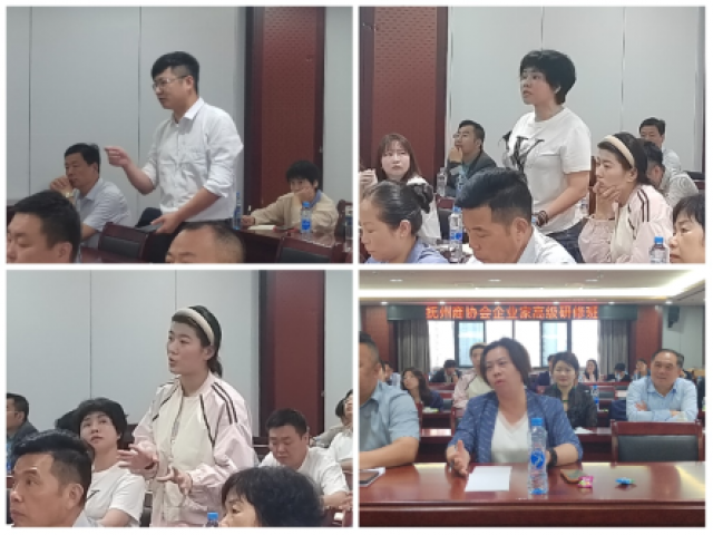 4月20日,抚州商协会企业家高级研修班(江西财经大学2023级财经管理干部抚州班)学员们在抚州市高新区职工之家大会堂上课,本次课程特邀华东交通大学副校长、博士生导师杨德敏教授为学员作《企业劳动用工和风险防范》专题授课。