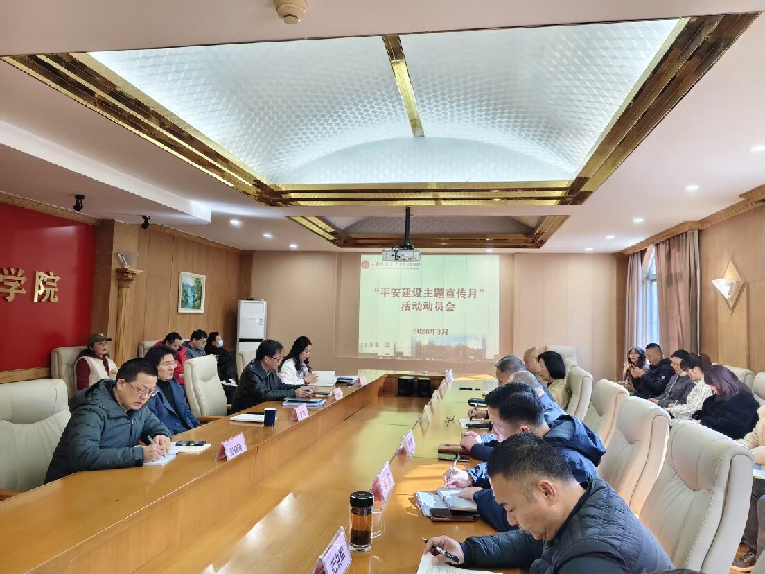 为深入贯彻落实学校关于平安校园建设的部署要求,进一步强化全体教职工的安全责任意识,3月11日上午,学院召开“平安建设主题宣传月”活动动员会。会议由学院党总支书记杨尚勇主持,全体教职工参加了会议。